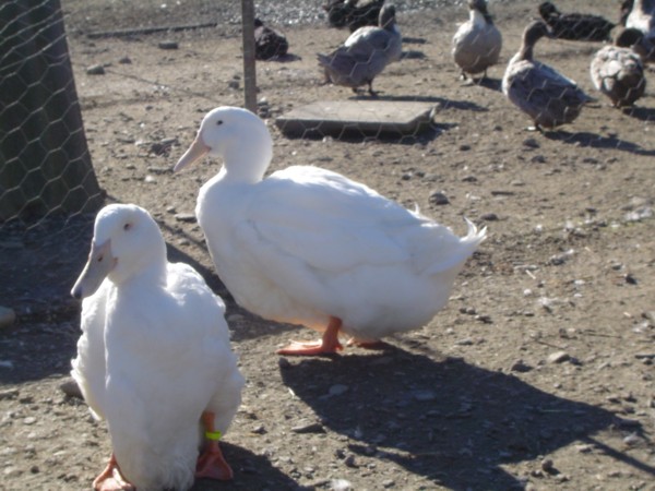 C'est un canard au corps rectangulaire, port horizantale , volumineux,aux plumage entiérement blanc pur